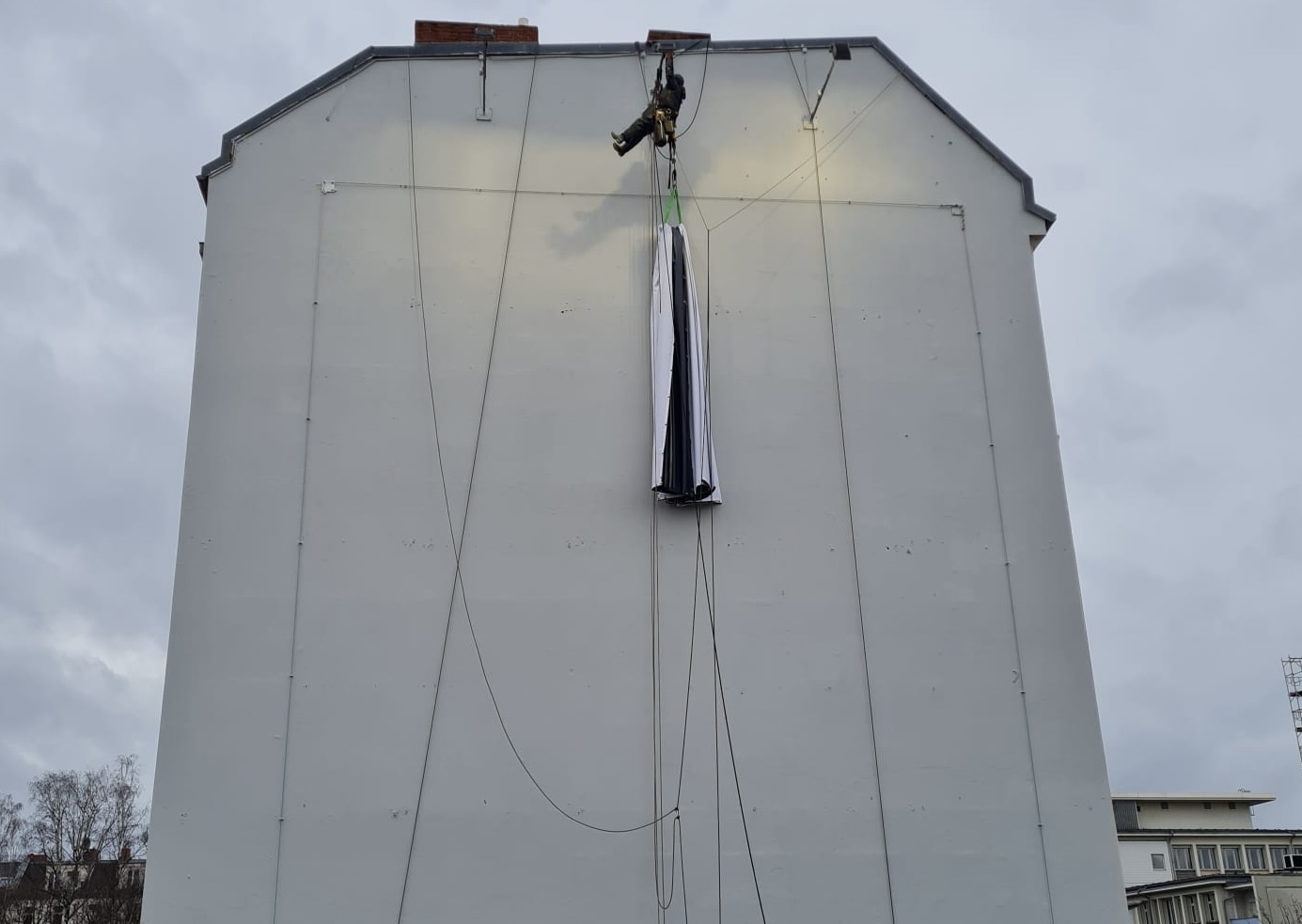 Montage von Personenfangnetzen in der Papierfabrik Albbruck